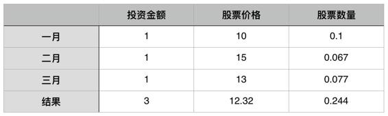 注意,因为你是“定期且定额”购买的股票,所以,最终,你“买到的均价”不一定恒等于“那个期间的均价”,甚至可能低于“那个期间的均价”。比如,在以上的例子里,三个月的股票均价大约是12.67 ,而你“买到的均价”却是12.32。