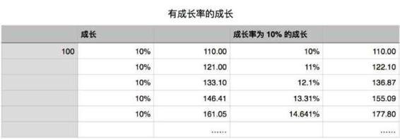 你可以参照这个表,感受下“有成长率的成长”会是多么的惊人。