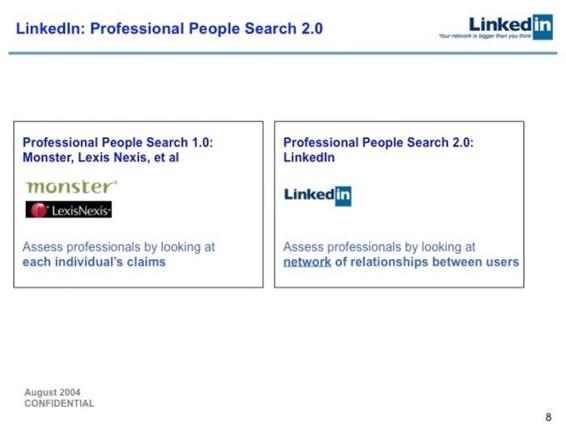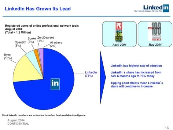 2013 年,Linkedin 的创始人 Reid Hoffman 公开了他在 2004 年向 Greylock 基金寻求 B 轮融资时所制作的演讲幻灯片 —— Hoffman 的那一次宣讲说服了 Greylock,使 Linkedin 成功获得 1,000 万美金的投资。